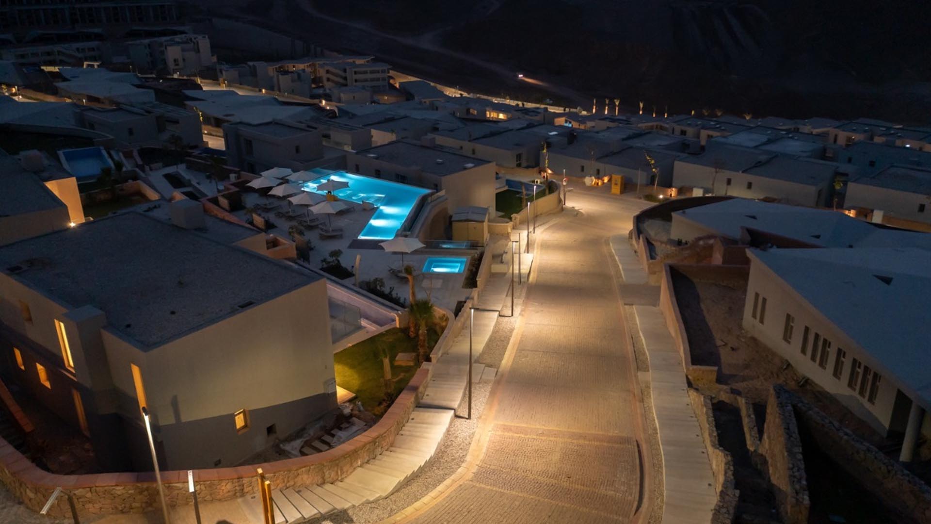 يقع على بعد 7 كيلو متر من كلاً من بورتو العين السخنة، وفندق موفنبيك الموجود على طريق السخنة الزعفرانة